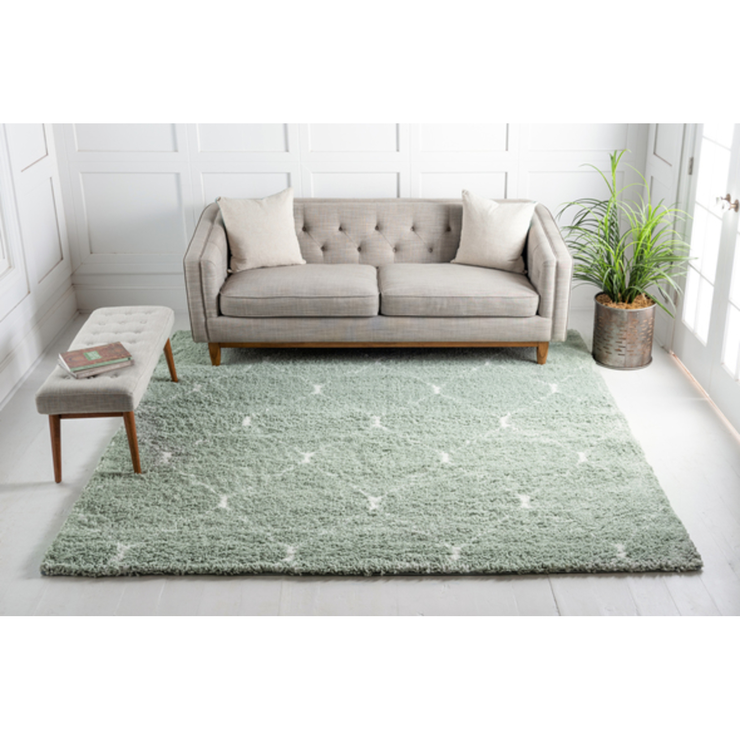 Unique Loom Fractured Rabat Shag Rug in Light Green Square 3144352