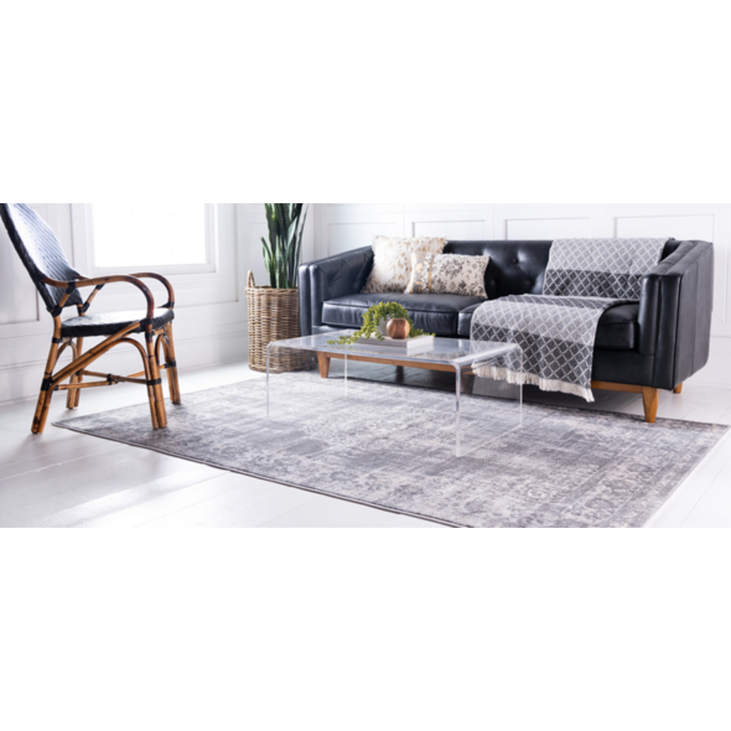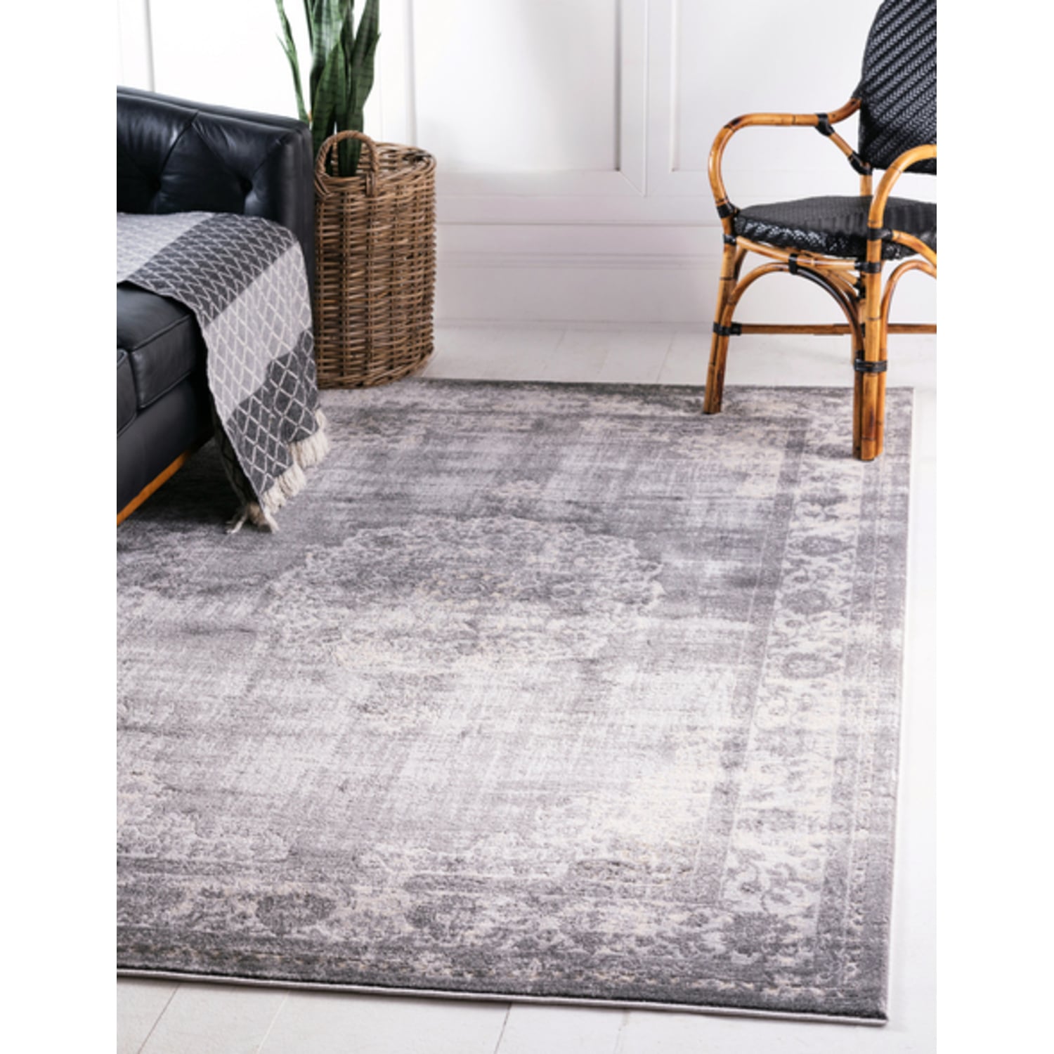 Unique Loom Blackthorn Leila Rug in Gray Rectangular 3144503
