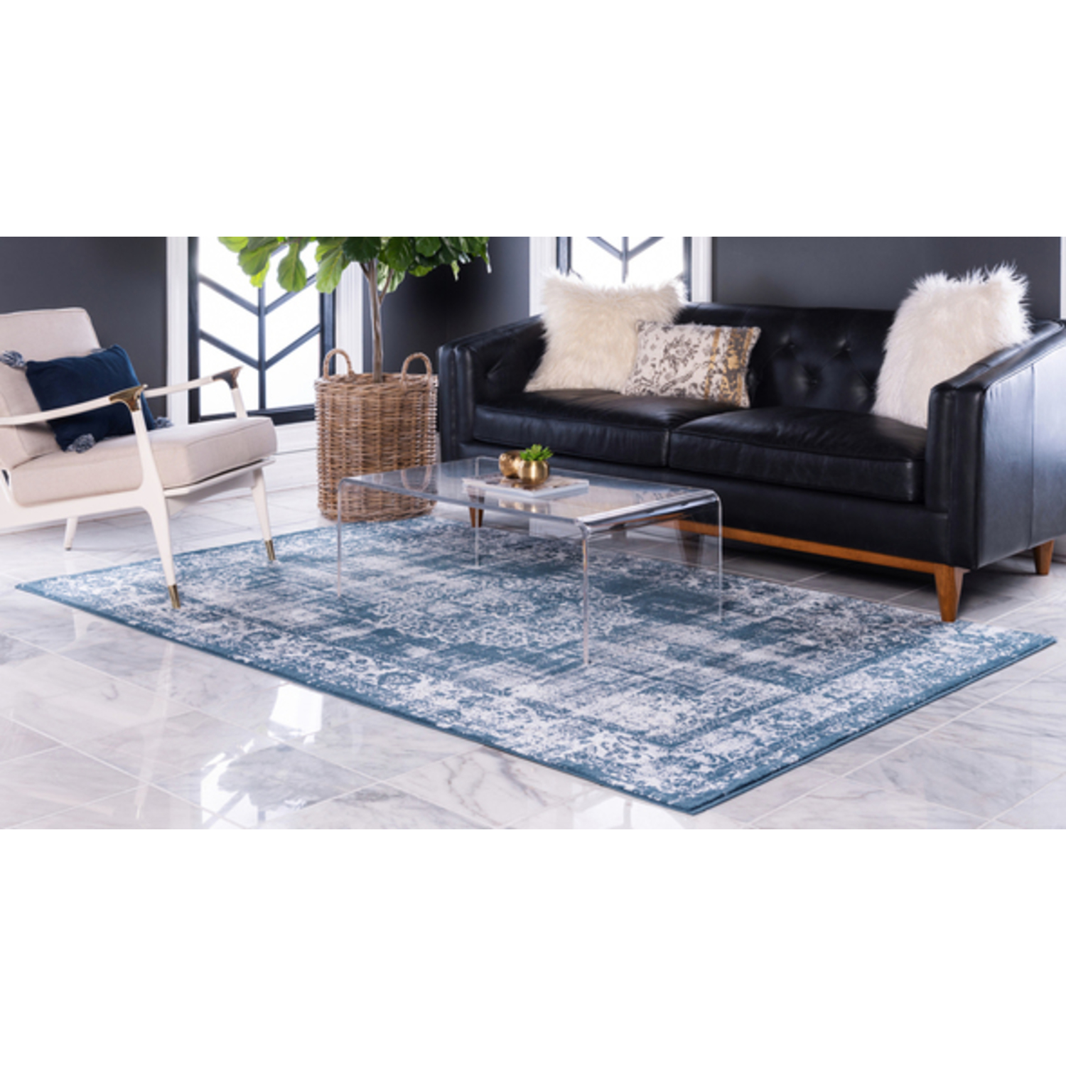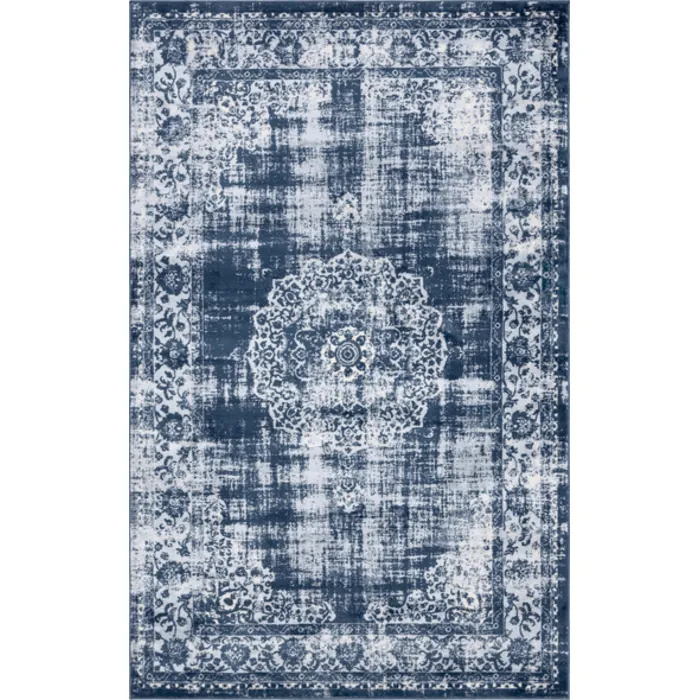 Unique Loom Blackthorn Leila Rug in Navy Blue Rectangular 3144516