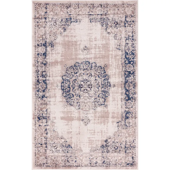 Unique Loom Blackthorn Leila Rug in Tan/Navy Blue Rectangular 3144537