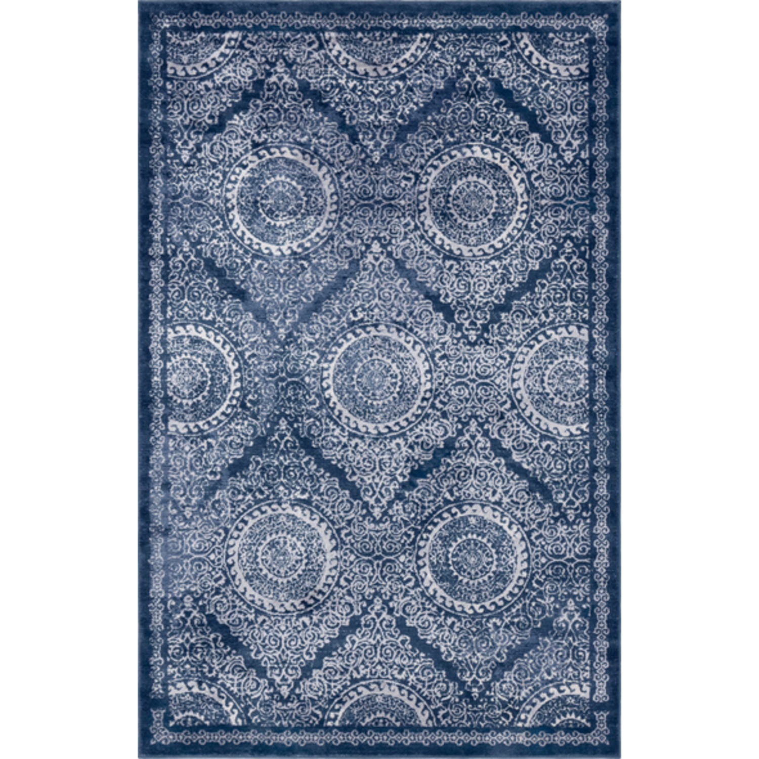 Unique Loom Alder Leila Rug in Navy Blue Rectangular 3144606