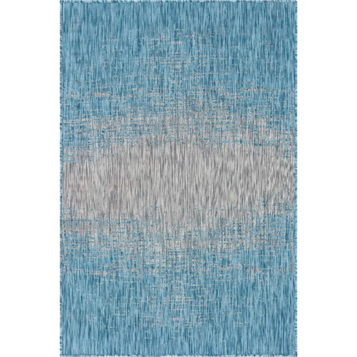 Unique Loom Outdoor Ombre Rug in Aqua Blue Rectangular 3144990