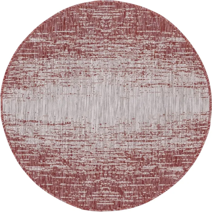 Unique Loom Outdoor Ombre Rug in Rust Red Round 3145007