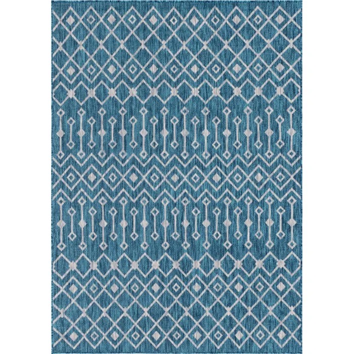 Unique Loom Outdoor Tribal Trellis Rug in Teal/Gray Rectangular 3145019
