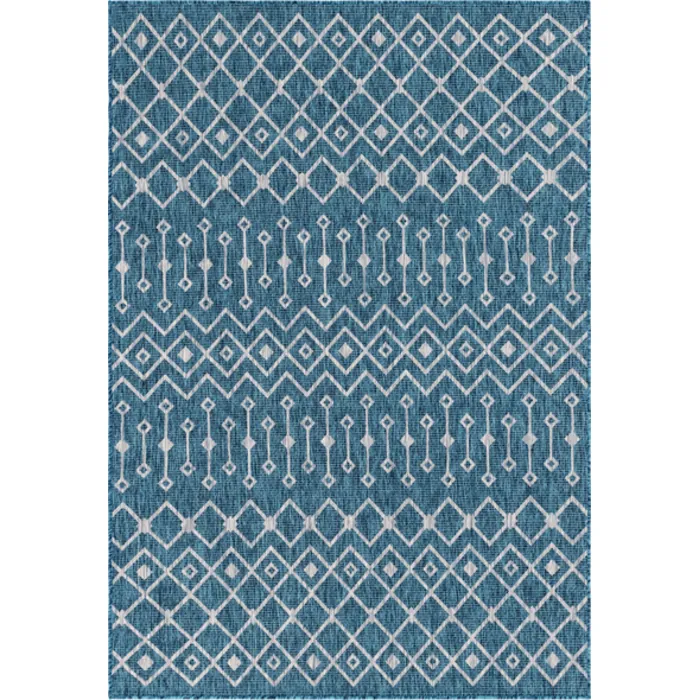 Unique Loom Outdoor Tribal Trellis Rug in Teal/Gray Rectangular 3145020