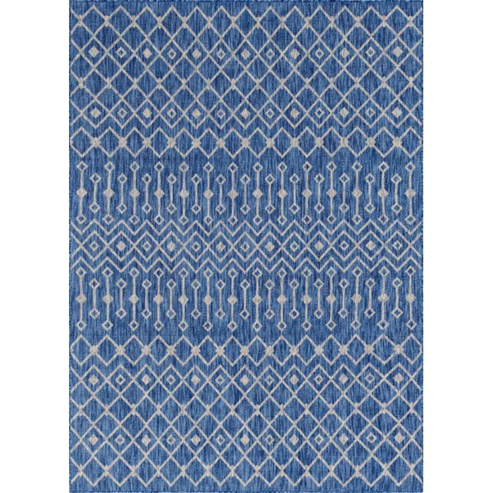 Unique Loom Outdoor Tribal Trellis Rug in Blue/Ivory Rectangular 3145026
