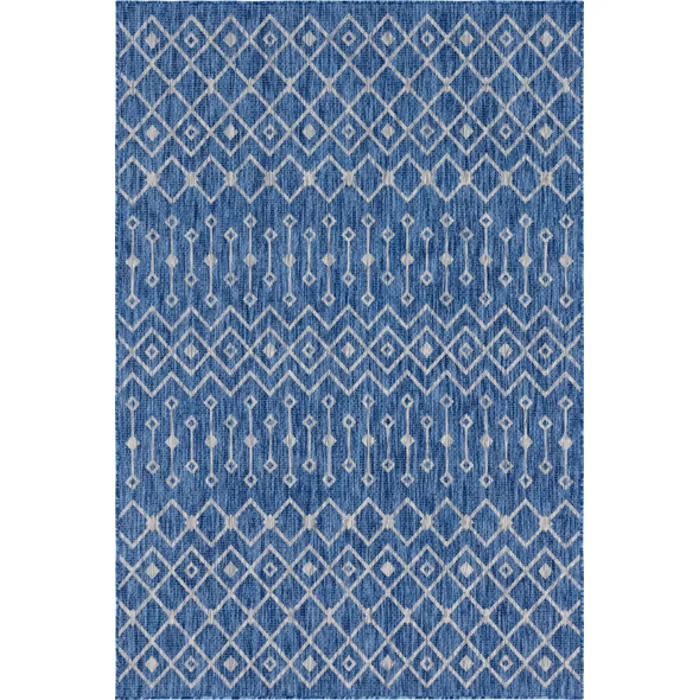 Unique Loom Outdoor Tribal Trellis Rug in Blue/Ivory Rectangular 3145028