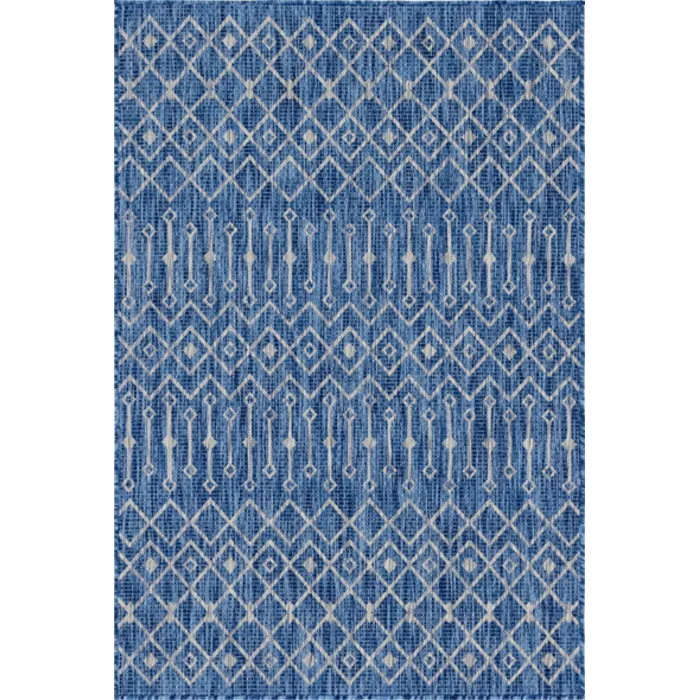 Unique Loom Outdoor Tribal Trellis Rug in Blue/Ivory Rectangular 3145030