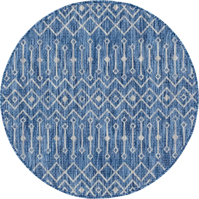 Unique Loom Outdoor Tribal Trellis Rug in Blue/Ivory Round 3145031