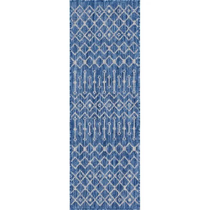 Unique Loom Outdoor Tribal Trellis Rug in Blue/Ivory Runner 3145032