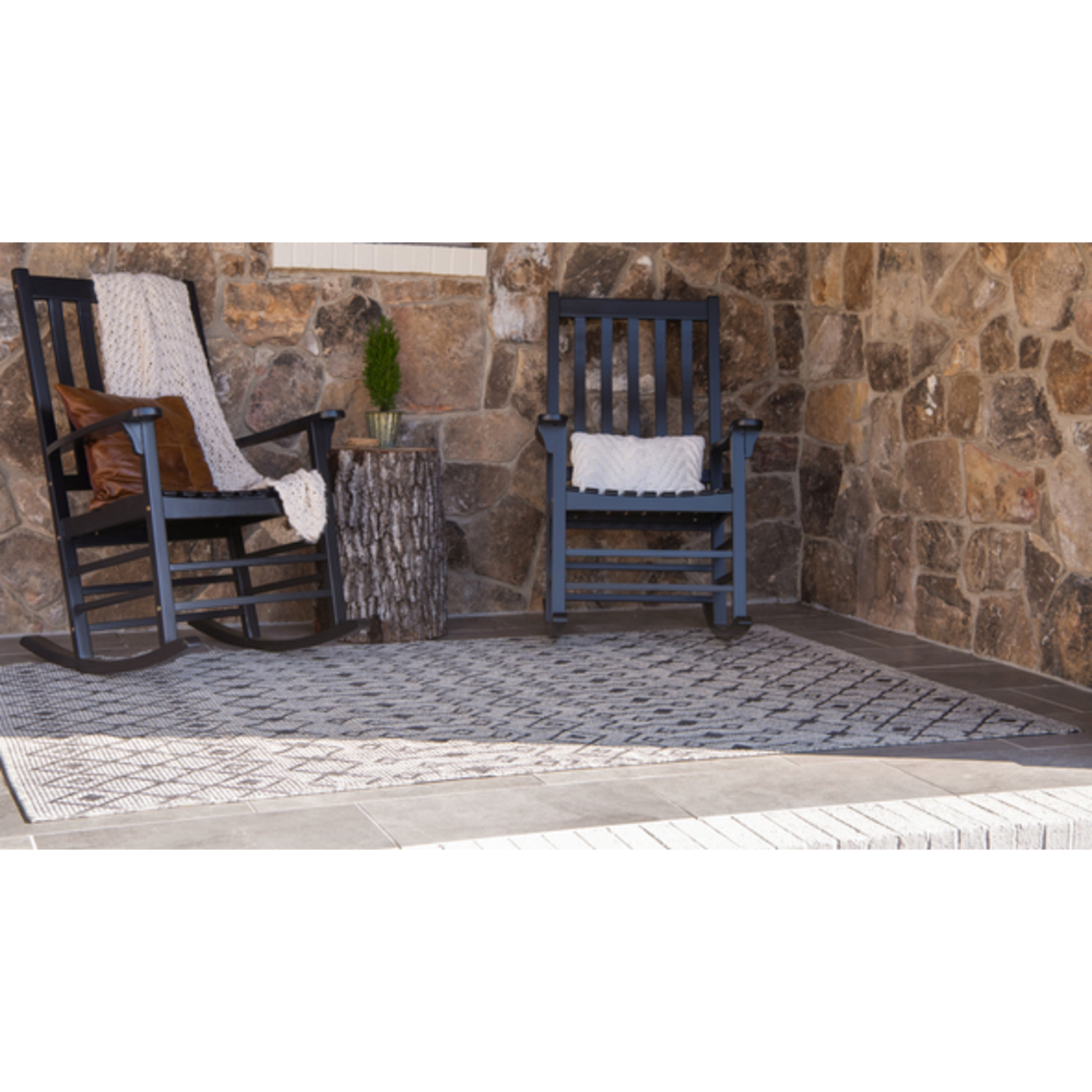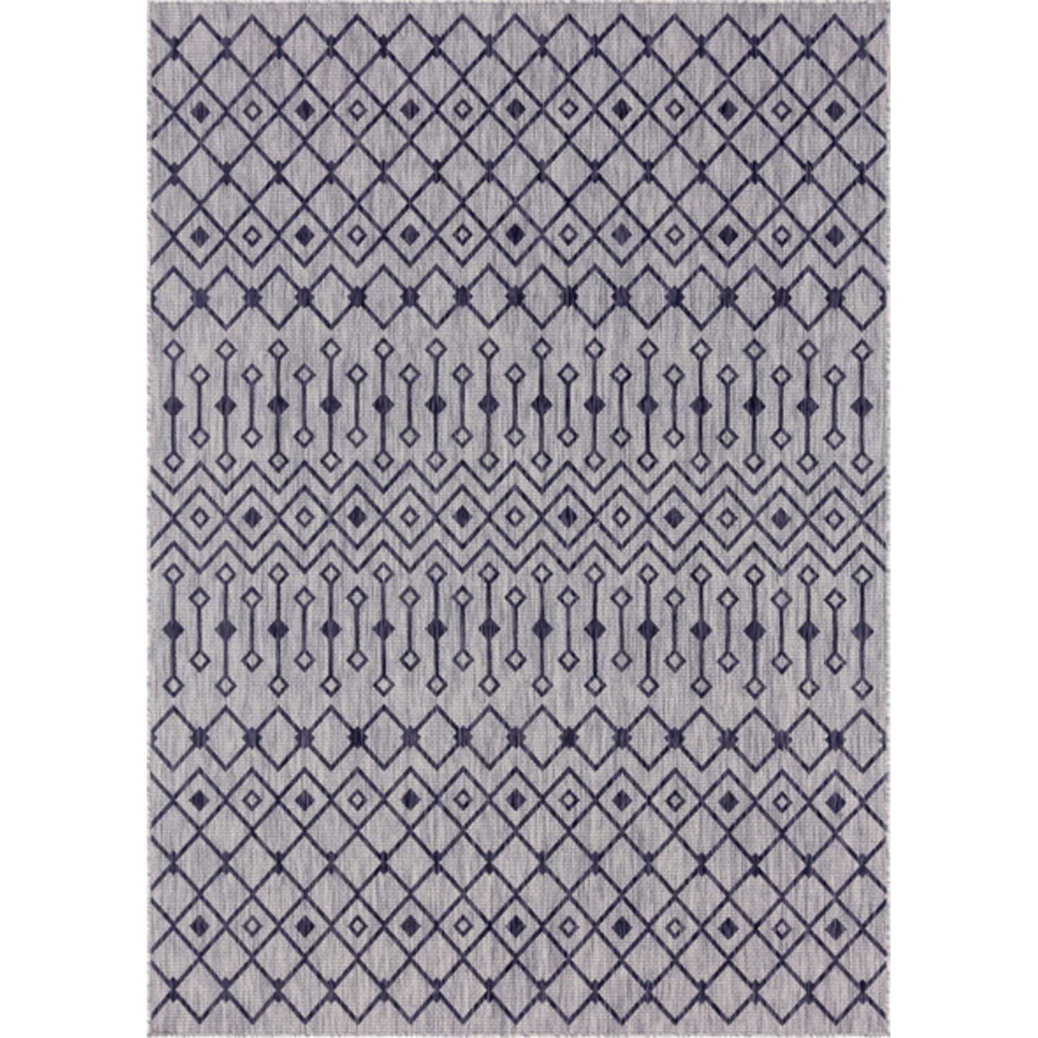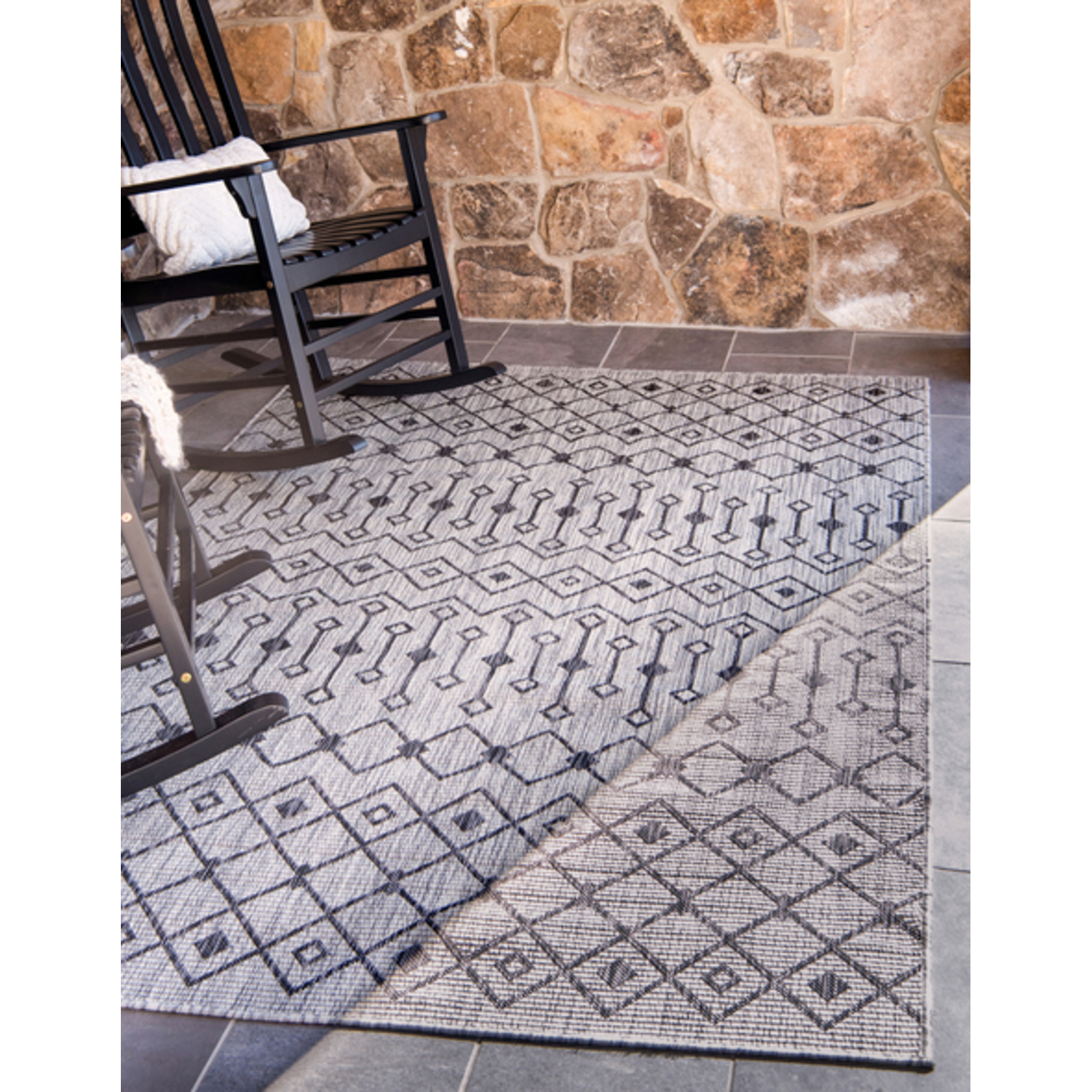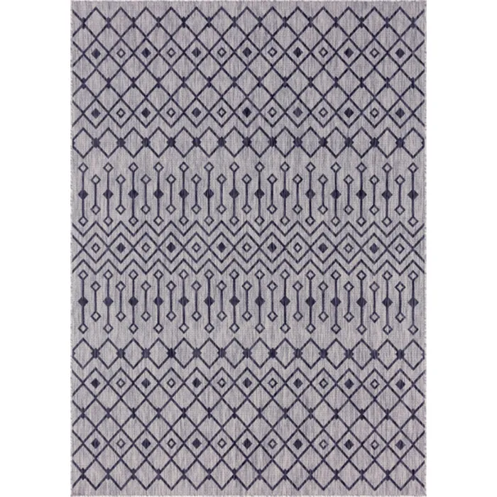 Unique Loom Outdoor Tribal Trellis Rug in Light Gray/Blue Rectangular 3145033