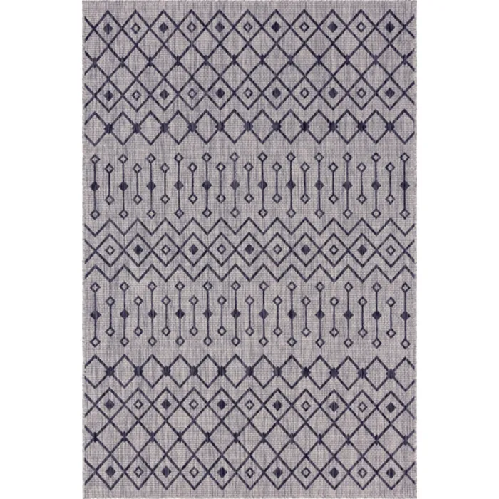 Unique Loom Outdoor Tribal Trellis Rug in Light Gray/Blue Rectangular 3145036