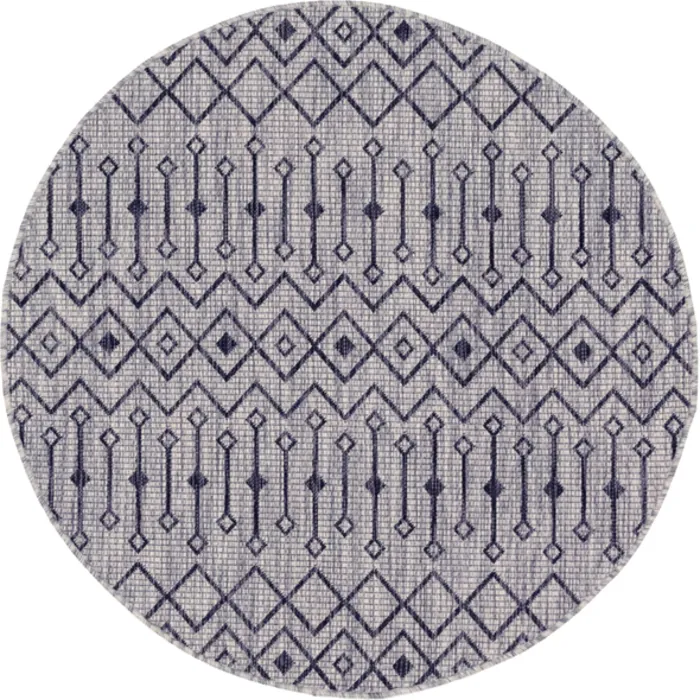 Unique Loom Outdoor Tribal Trellis Rug in Light Gray/Blue Round 3145039