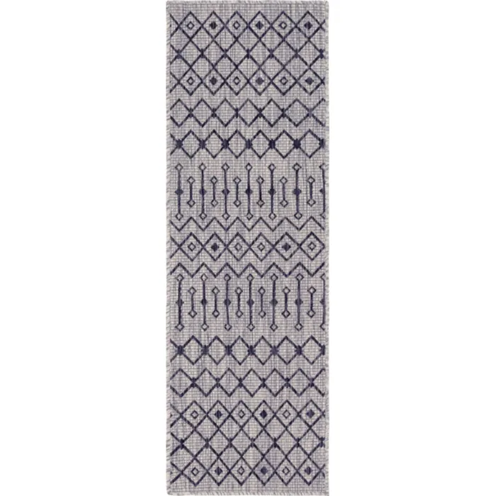 Unique Loom Outdoor Tribal Trellis Rug in Light Gray/Blue Runner 3145040