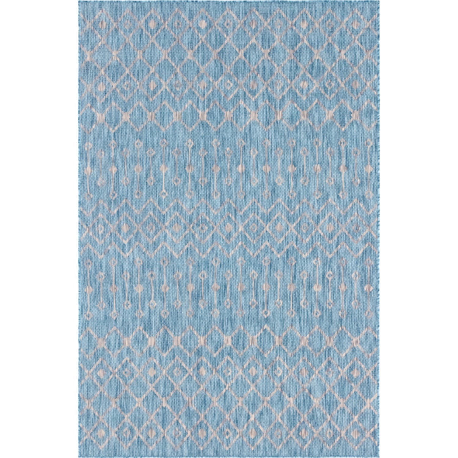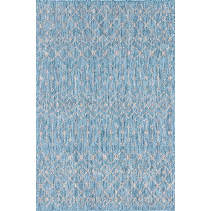 Unique Loom Outdoor Tribal Trellis Rug in Aqua Blue/Ivory Rectangular 3145044
