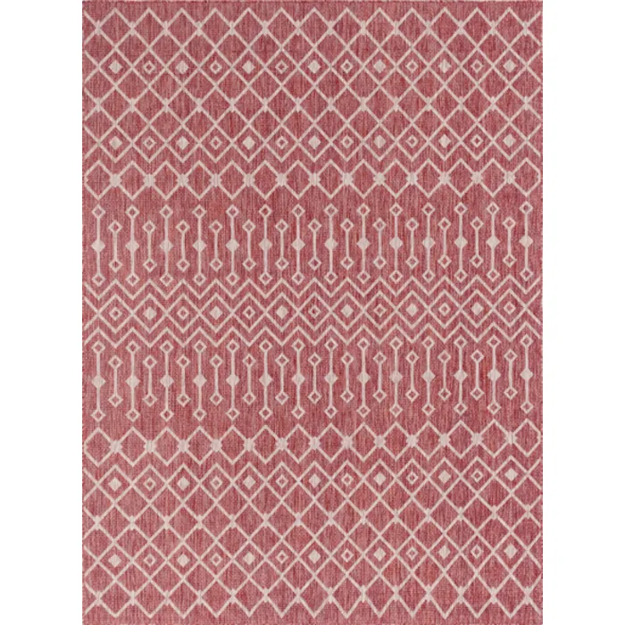 Unique Loom Outdoor Tribal Trellis Rug in Rust Red/Gray Rectangular 3145058