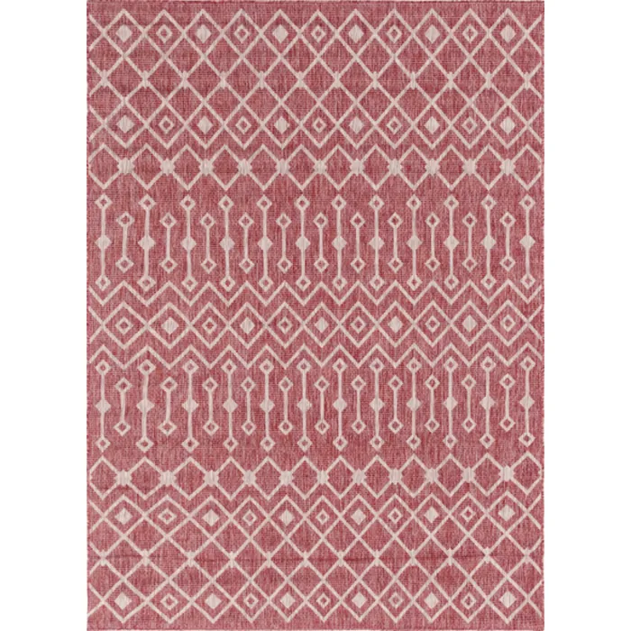 Unique Loom Outdoor Tribal Trellis Rug in Rust Red/Gray Rectangular 3145059