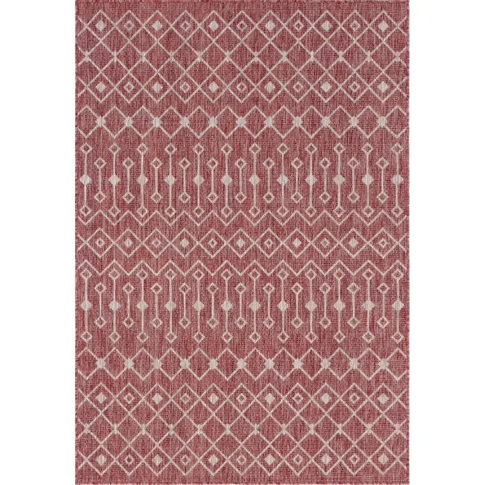 Unique Loom Outdoor Tribal Trellis Rug in Rust Red/Gray Rectangular 3145062