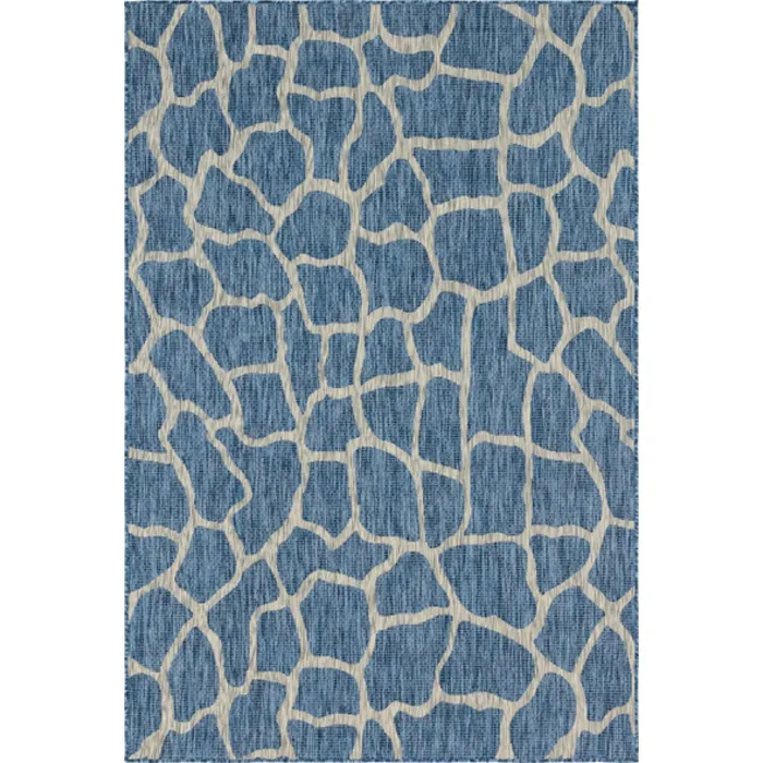 Unique Loom Outdoor Giraffe Rug in Blue Rectangular 3145196