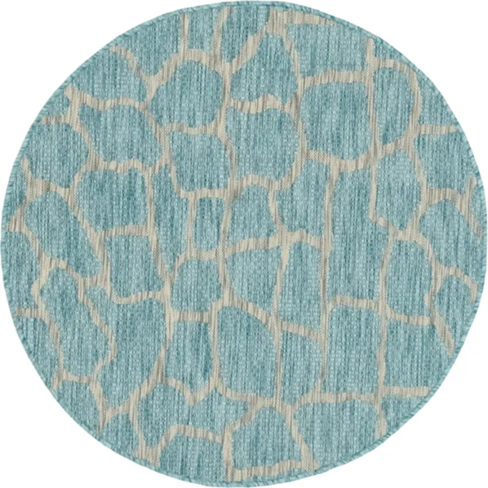 Unique Loom Outdoor Giraffe Rug in Aqua Blue Round 3145207