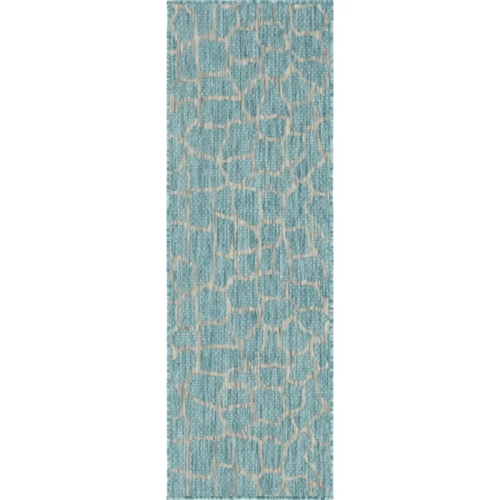 Unique Loom Outdoor Giraffe Rug in Aqua Blue Runner 3145208