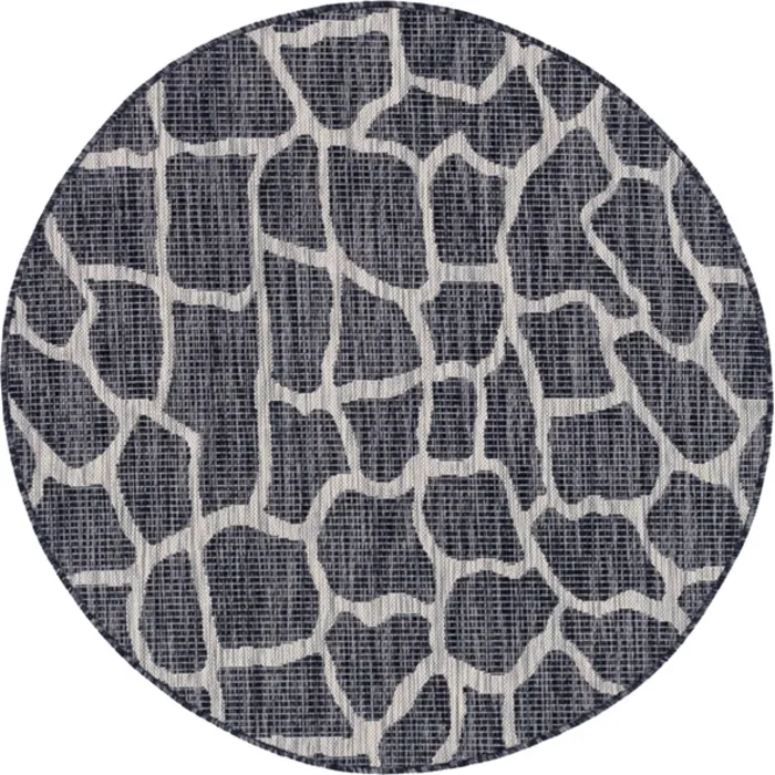 Unique Loom Outdoor Giraffe Rug in Dark Gray Round 3145215