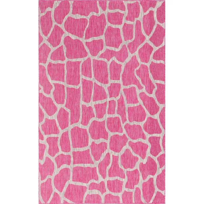 Unique Loom Outdoor Giraffe Rug in Pink Rectangular 3145221