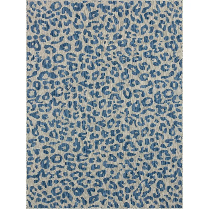 Unique Loom Outdoor Leopard Rug in Blue Rectangular 3145225