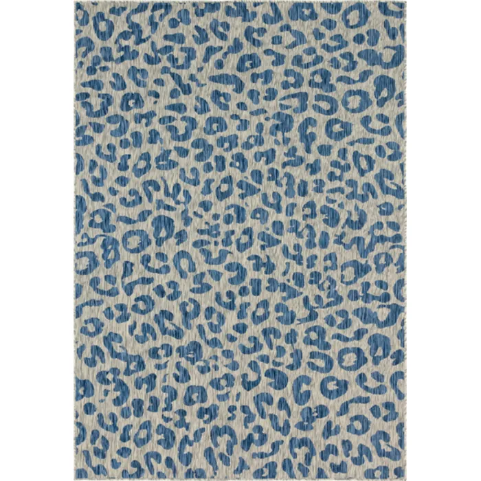 Unique Loom Outdoor Leopard Rug in Blue Rectangular 3145227