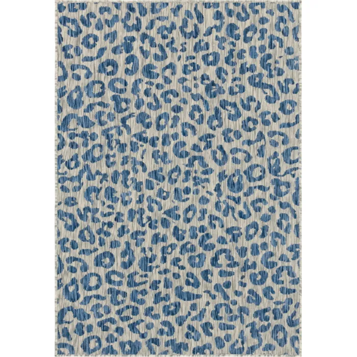 Unique Loom Outdoor Leopard Rug in Blue Rectangular 3145228