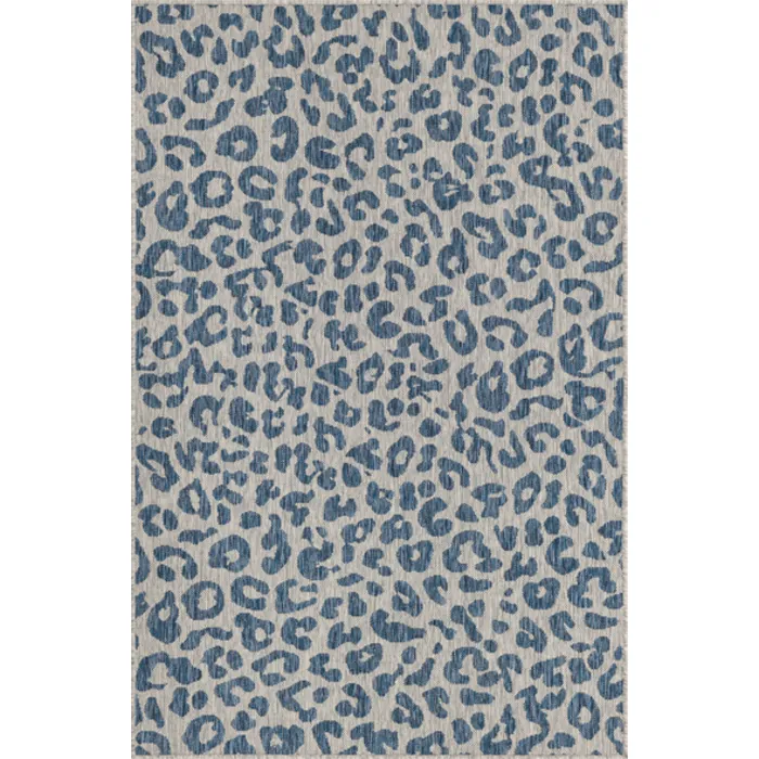 Unique Loom Outdoor Leopard Rug in Blue Rectangular 3145230