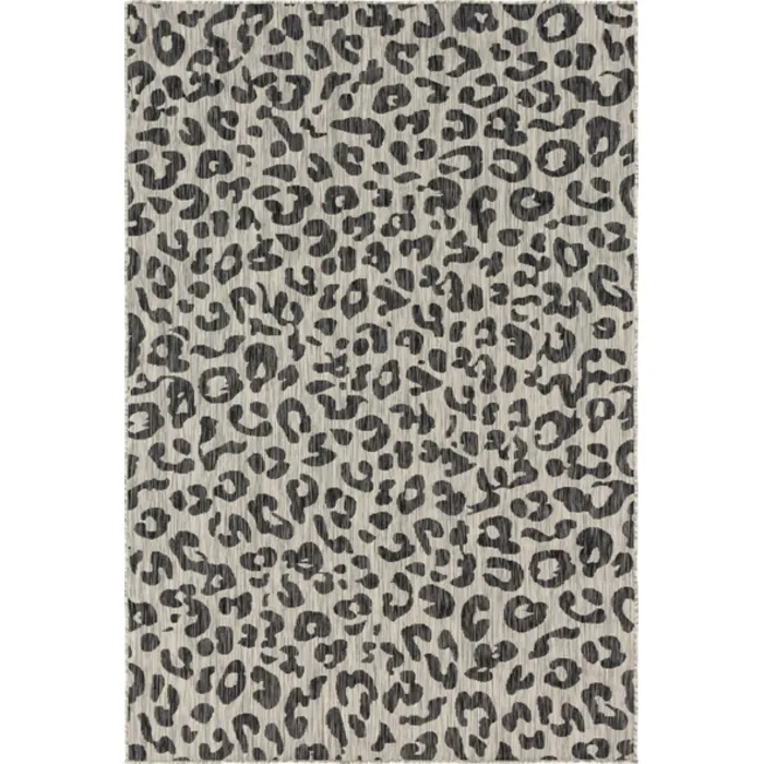Unique Loom Outdoor Leopard Rug in Black Rectangular 3145244