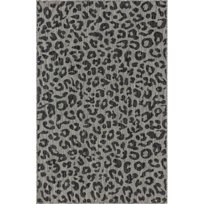Unique Loom Outdoor Leopard Rug in Black Rectangular 3145245