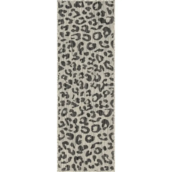 Unique Loom Outdoor Leopard Rug in Black Runner 3145248