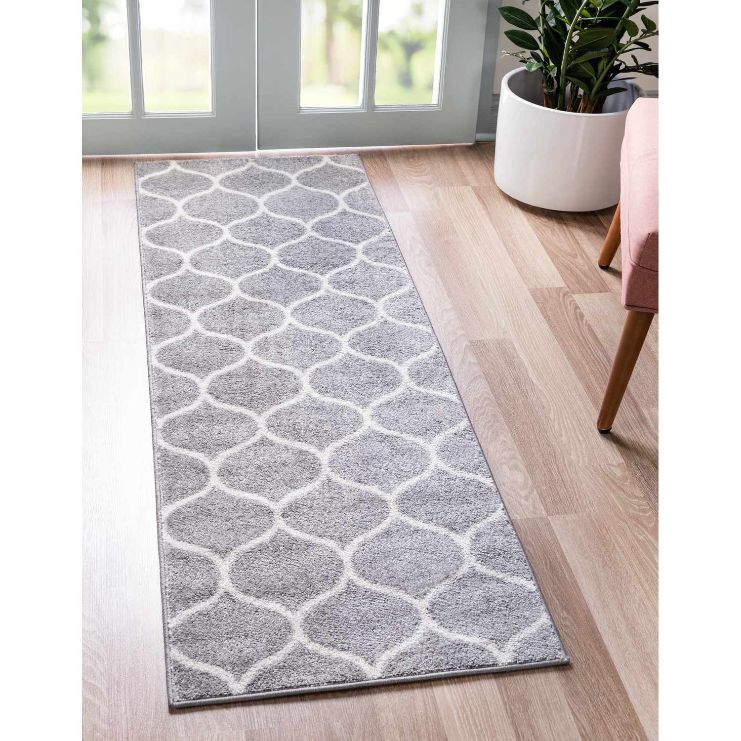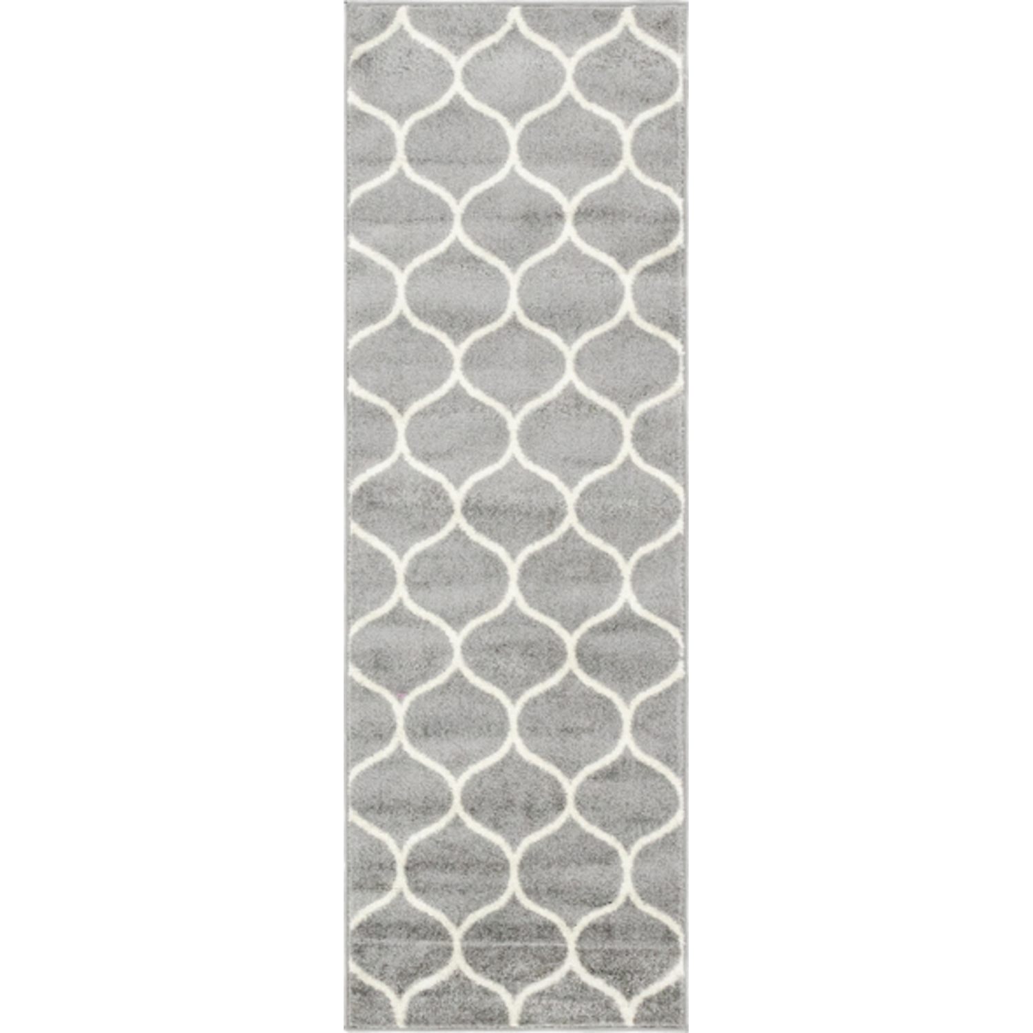 Unique Loom Rounded Trellis Frieze Rug in Light Gray Runner 3145455