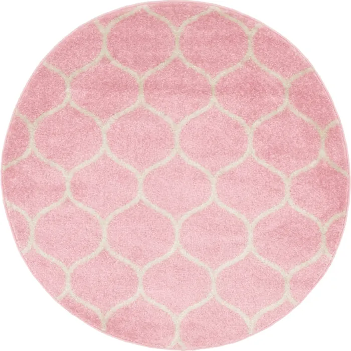 Unique Loom Rounded Trellis Frieze Rug in Pink Round 3145462