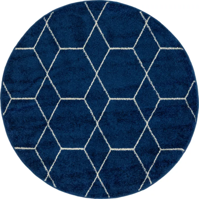 Unique Loom Geometric Trellis Frieze Rug in Navy Blue Round 3145466