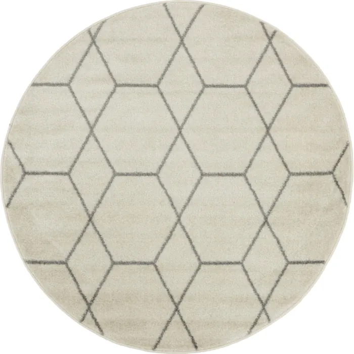 Unique Loom Geometric Trellis Frieze Rug in Ivory Round 3145472