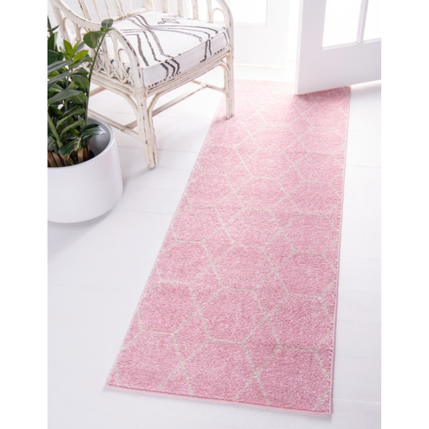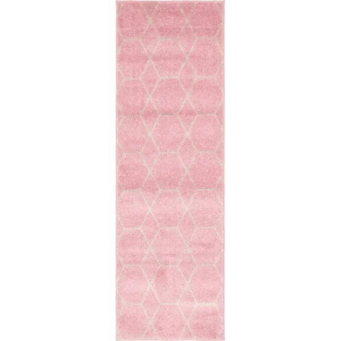 Unique Loom Geometric Trellis Frieze Rug in Light Pink Runner 3145477