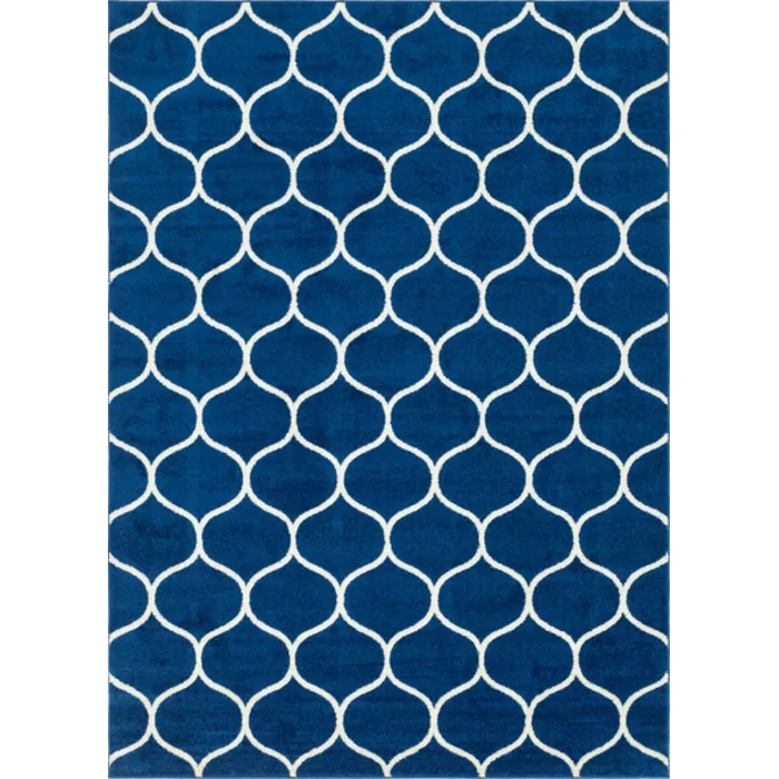 Unique Loom Rounded Trellis Frieze Rug in Navy Blue Rectangular 3146403