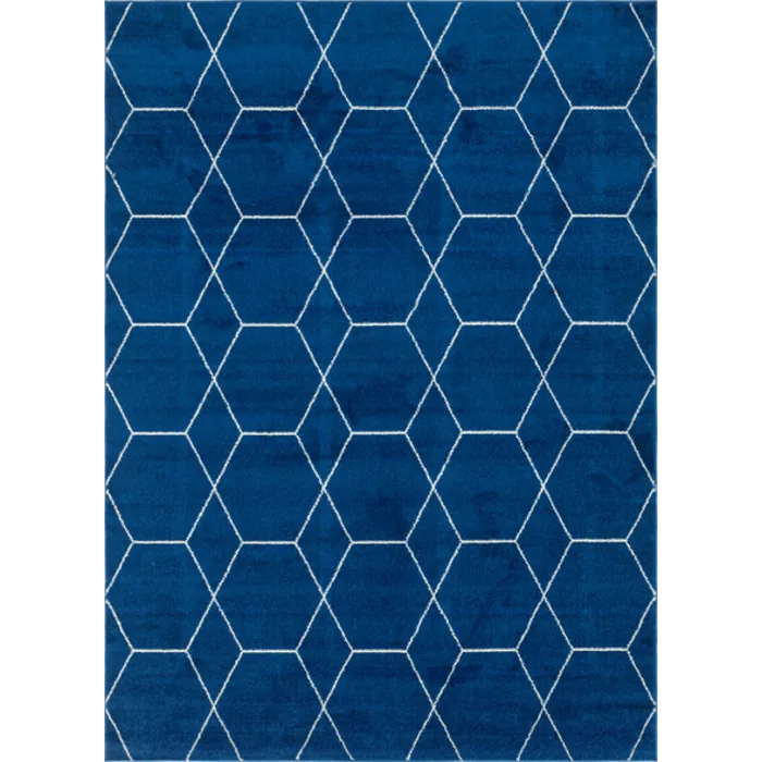 Unique Loom Geometric Trellis Frieze Rug in Navy Blue Rectangular 3146473