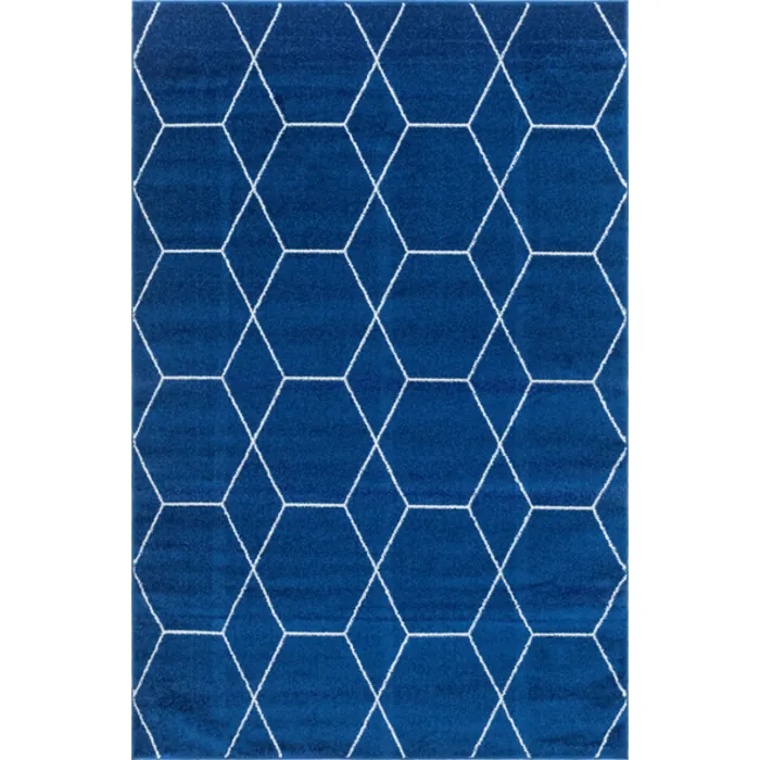 Unique Loom Geometric Trellis Frieze Rug in Navy Blue Rectangular 3146475