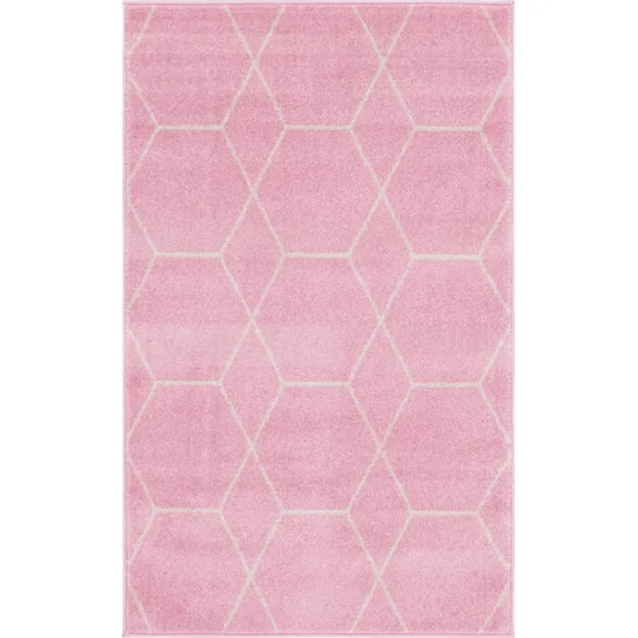 Unique Loom Geometric Trellis Frieze Rug in Light Pink Rectangular 3146526