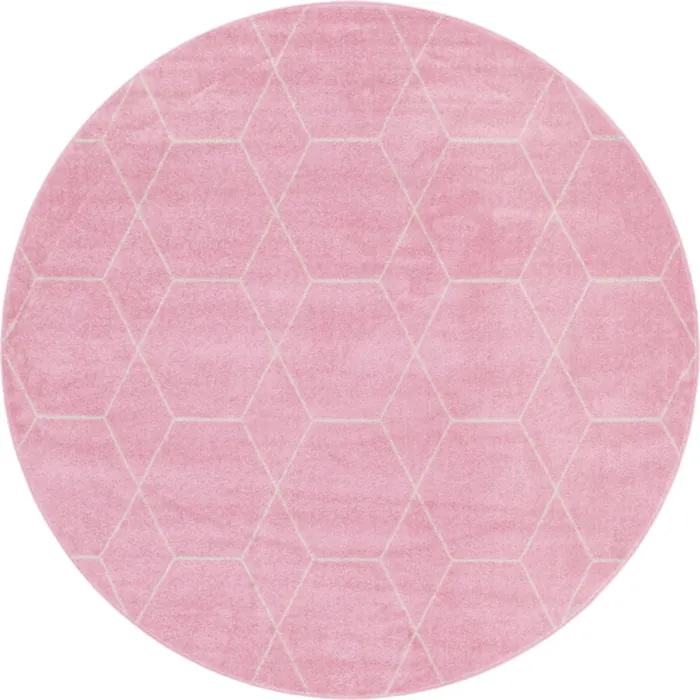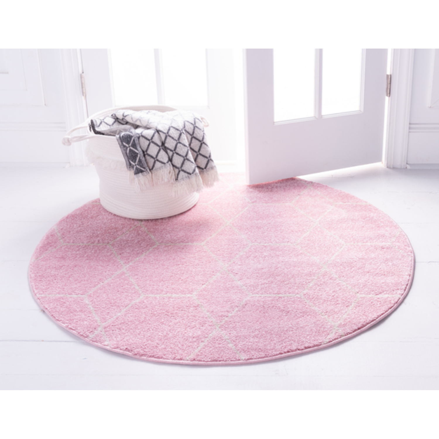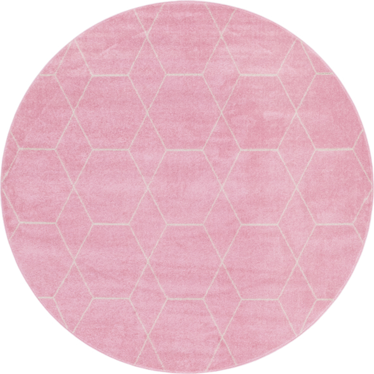 Unique Loom Geometric Trellis Frieze Rug in Light Pink Round 3146528