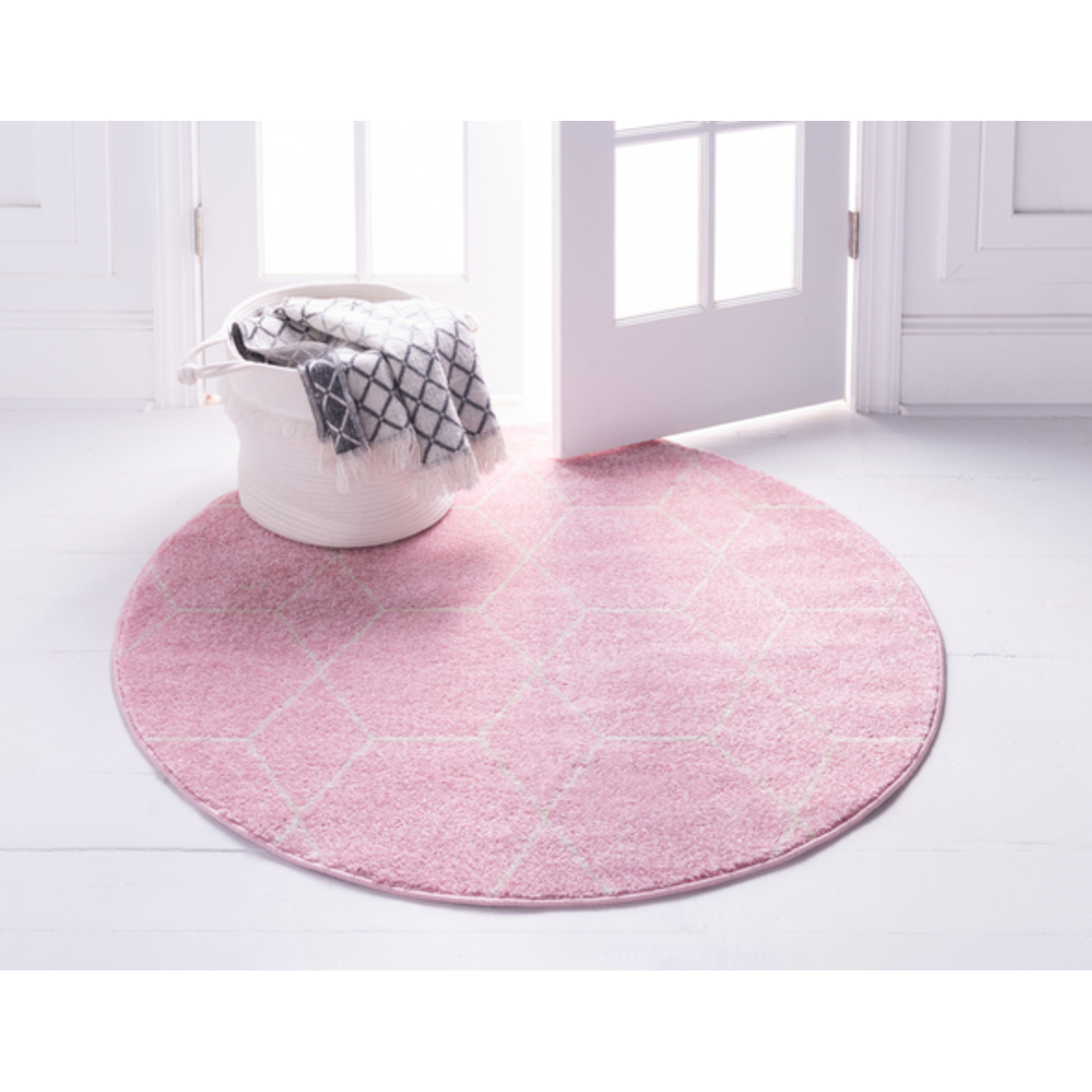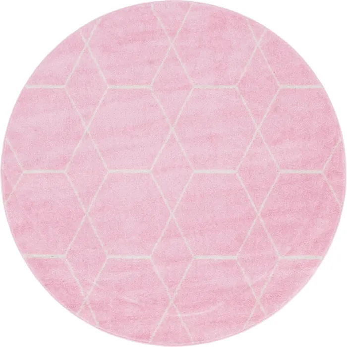 Unique Loom Geometric Trellis Frieze Rug in Light Pink Round 3146529