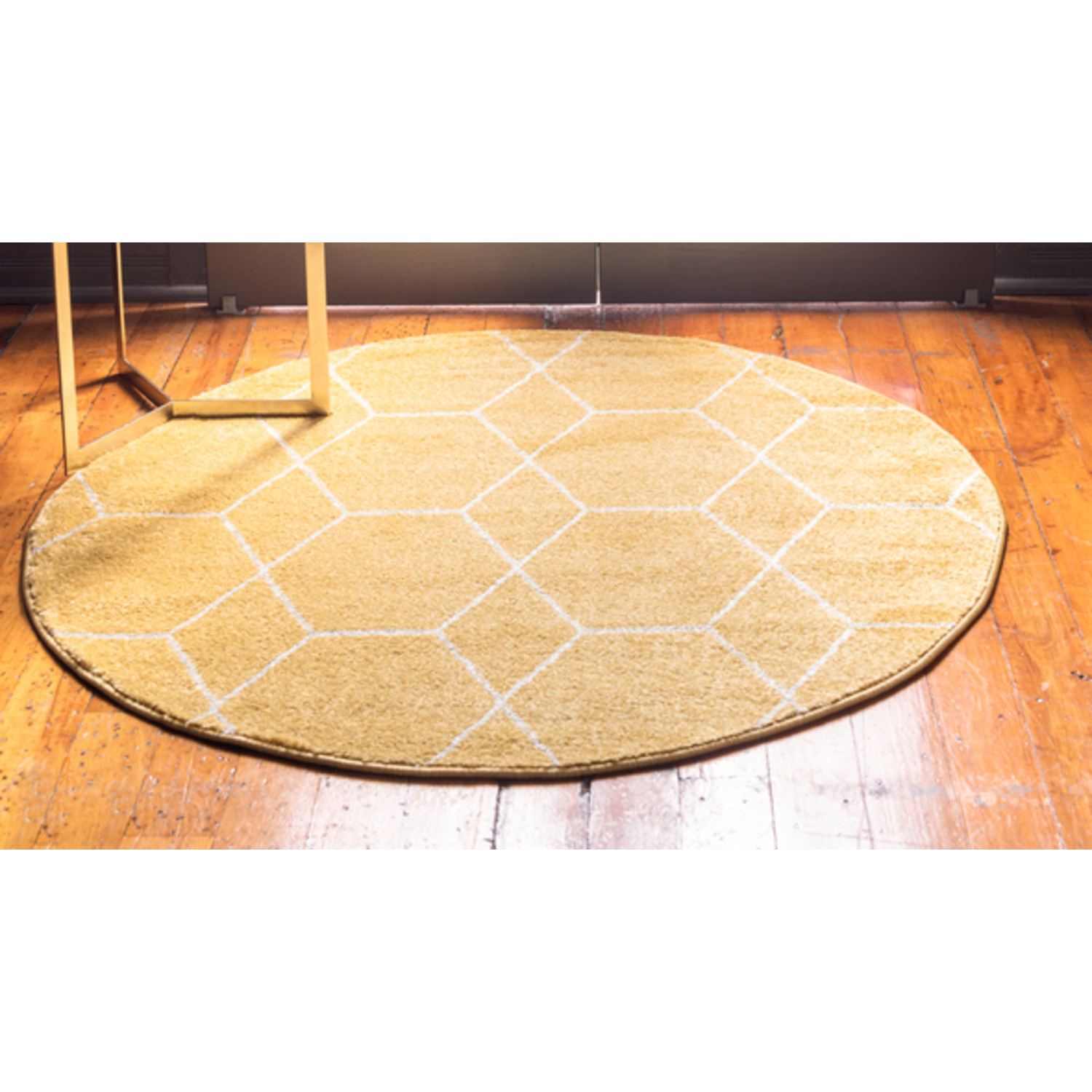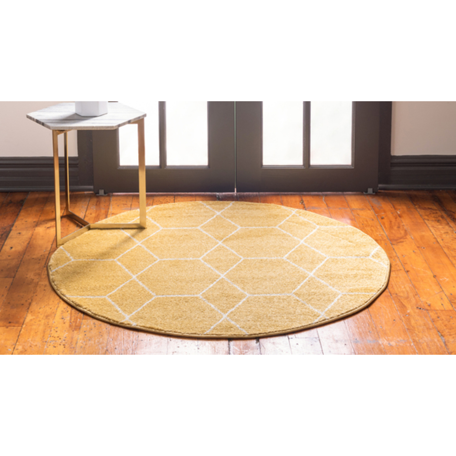 Unique Loom Geometric Trellis Frieze Rug in Yellow Round 3146538