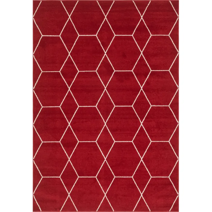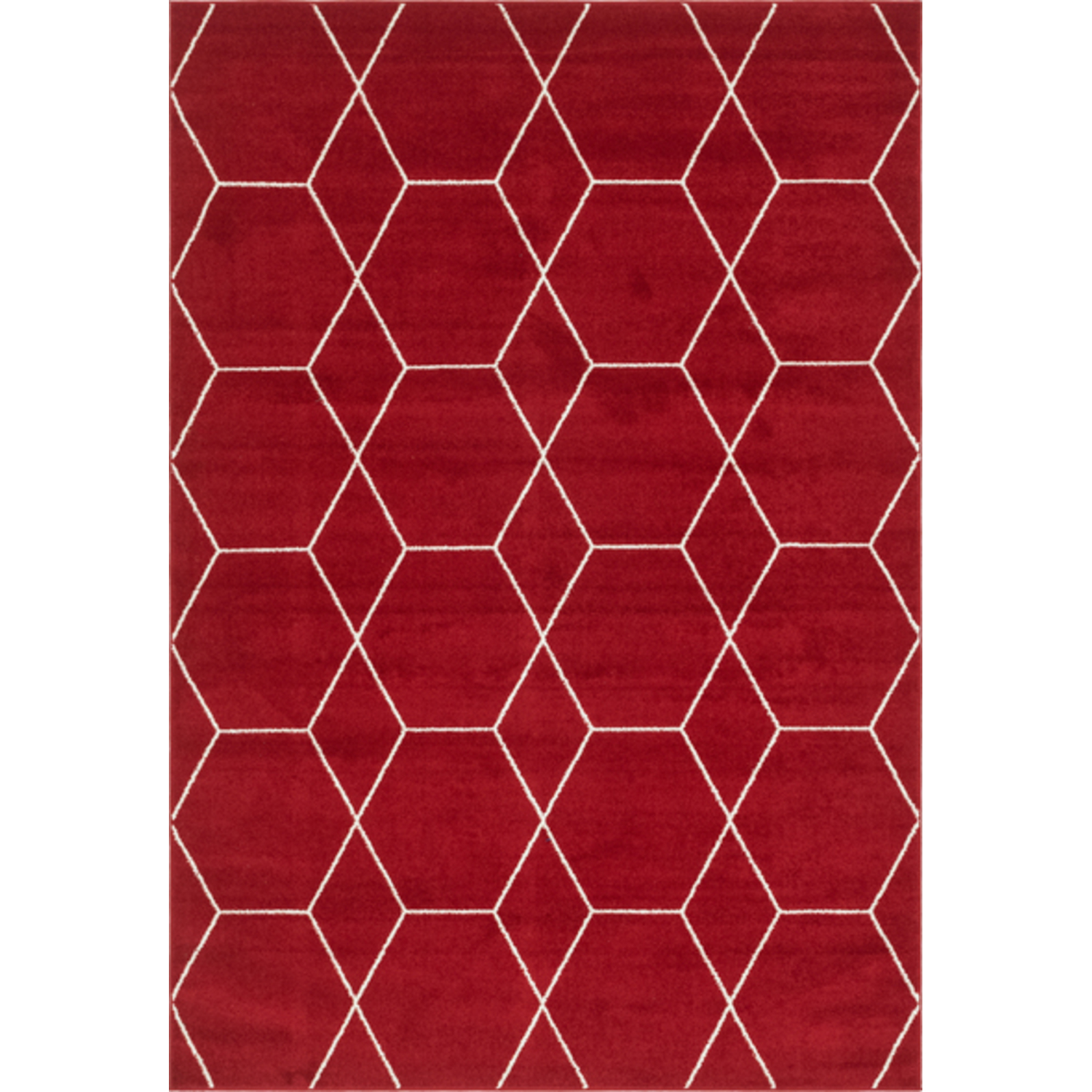 Unique Loom Geometric Trellis Frieze Rug in Red Rectangular 3146659