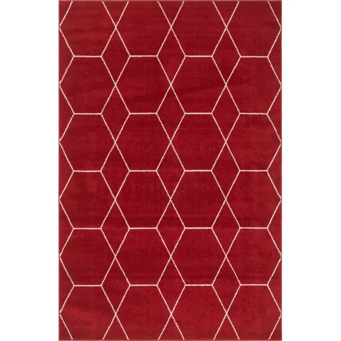 Unique Loom Geometric Trellis Frieze Rug in Red Rectangular 3146660