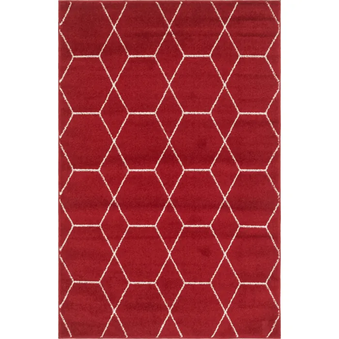 Unique Loom Geometric Trellis Frieze Rug in Red Rectangular 3146662