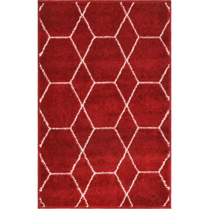 Unique Loom Geometric Trellis Frieze Rug in Red Rectangular 3146664